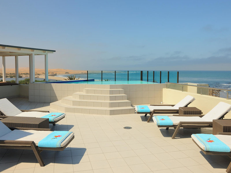 Poloha a okolie Vďaka ideálnej polohe, len 50 m od Atlantického oceánu a len pár minút chôdze od centra mesta Swakopmund, môžete odtiaľto preskúmať toto očarujúce historické mesto. Nákupy, aktivity a atrakcie sú len kúsok odtiaľto. Vzdialenosť od letiska Windhoek cca 405 km.