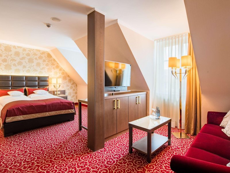 Vaše ubytovanie: Klimatizácia a kúrenie zabezpečujú príjemnú klímu v izbe. Izby sú vybavené manželskou posteľou. Prístelky je možné požiadať. K dispozícii je aj trezor a písací stôl. K dispozícii je aj kuchynský kút s príslušenstvom na prípravu čaju/kávy. Okrem toho je k dispozícii telefón, TV, rádio a Wi-Fi pripojenie (bezplatné). Kúpeľňa so sprchovacím kútom a vaňou je vybavená sušičom vlasov. Pre väčšie pohodlie sú k dispozícii toaletné potreby. K dispozícii sú bezbariérové izby. Hotel ponúka nefajčiarske izby.