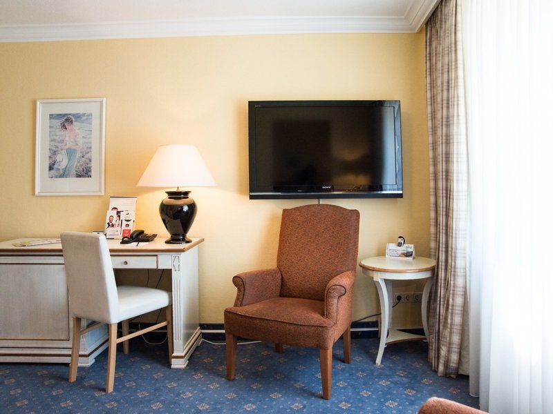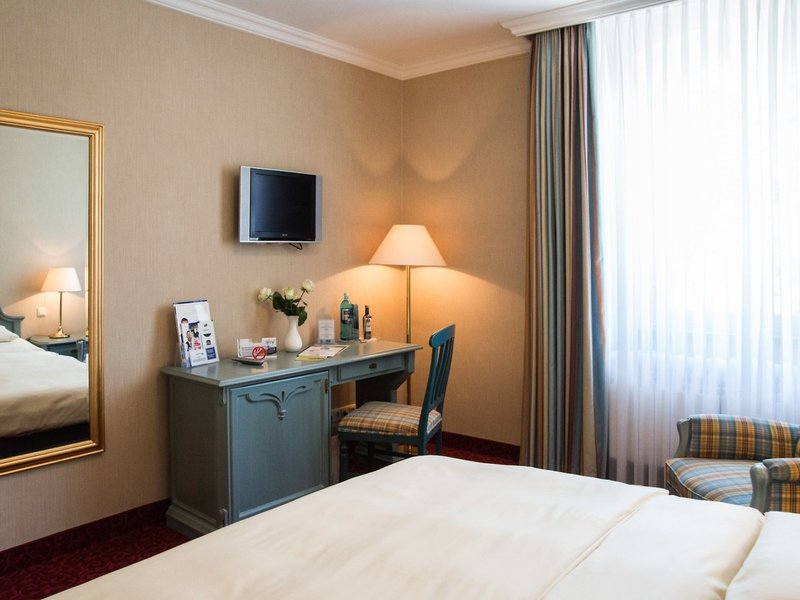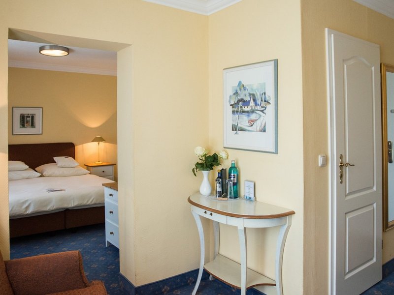 - Komfort Doppelzimmer (JSX1), Doppelzimmer, Nichtraucherzimmer, im Nebengebäude, Landseite, Landblick, ca. 18 - 25 m², letzte Teilrenovierung 2018, Gesamtanzahl der Räume in diesem Zimmertyp: 1, Aufteilung wie folgt: kombiniertes Wohn-/Schlafzimmer, 1 Doppelbett (180x200cm), Heizung: individuell regelbar, Fußboden: Laminat, Teppichboden, Schreibtisch, Minibar: gegen Gebühr, Barzahlung, Minibarauffüllung, Telefon, Internet: WLAN/WiFi: ohne Gebühr, Fernseher: Flatscreen, im Wohnbereich, Sat-TV, Badewanne oder Dusche, WC, Föhn