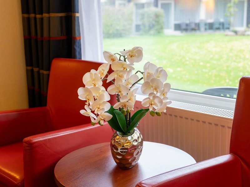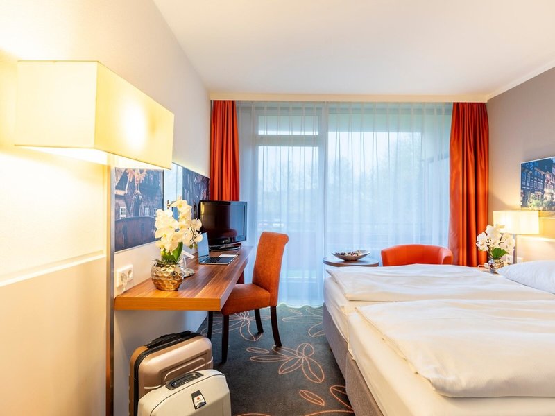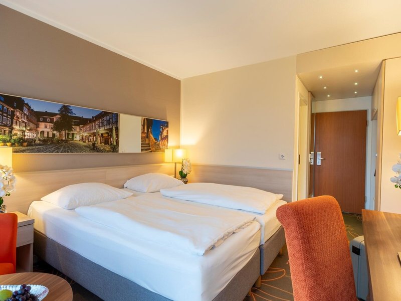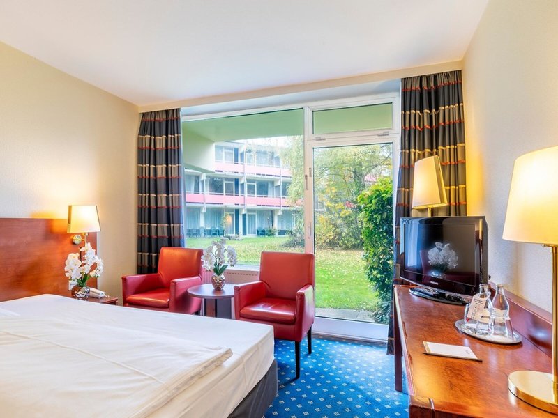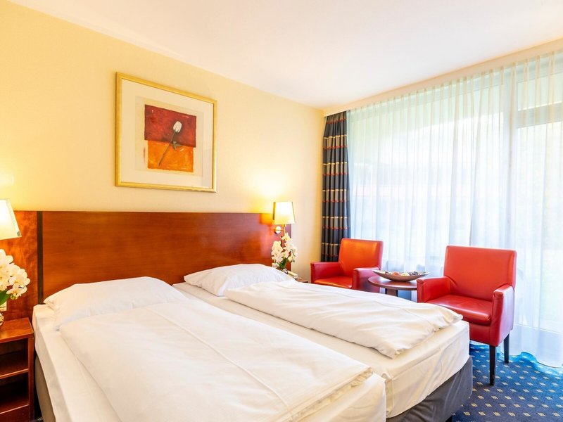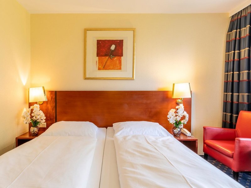 - Doppelzimmer Komfort (DZX1), Doppelzimmer, Nichtraucherzimmer, im Hauptgebäude, Landseite, Gartenblick, Landblick, ca. 20 m², Gesamtanzahl der Räume in diesem Zimmertyp: 1, 2 Einzelbetten, 1 Kinderbett, Babybett: ohne Gebühr, Anfrage notwendig, Heizung: individuell regelbar, Fußboden: Teppichboden, Schreibtisch, Minibar: Wasser, Telefon, Internet: WLAN/WiFi: ohne Gebühr, Fernseher: Flatscreen, Sat-TV, Reinigungsservice: 24 Stunden, Dusche, WC, Föhn, Balkon oder Terrasse: mit Sitzgelegenheit