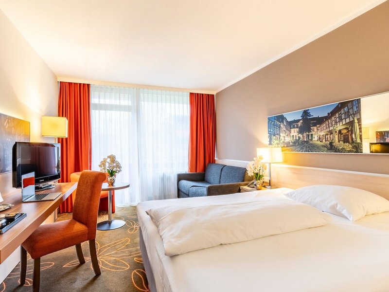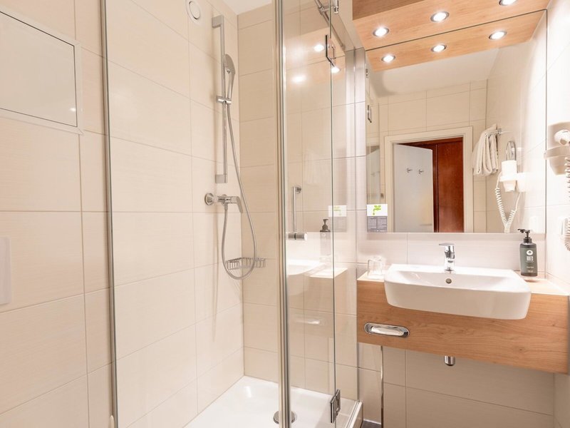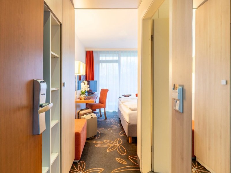 - Jednolôžková izba typ 1 (EZX1), jednolôžková izba, nefajčiarska izba, v hlavnej budove, výhľad na mesto, cca 20 m², celkový počet izieb v tomto type izby: 1, 2 samostatné postele, 1 detská posteľ, detská postieľka: bezplatne, na požiadanie potrebné, kúrenie: individuálne ovládané, podlaha: koberec, písací stôl, telefón, internet: WLAN/WiFi: bezplatne, televízor: plochá obrazovka, satelitná TV, upratovacia služba, sprcha, WC, fén, balkón alebo terasa: s posedením