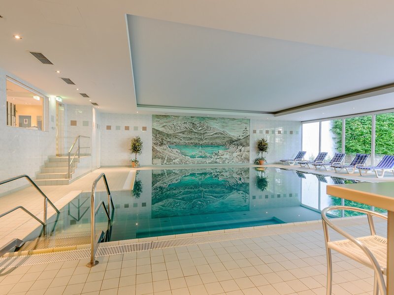 Sport & Fitness: Aktive Erholung und gesundes Badevergnügen erwarten die Gäste im Indoorpool. Bequeme Liegestühle stehen auf der Terrasse bereit. Das Hotel bietet ein umfangreiches Outdoor-Sportprogramm mit Radfahren/Mountainbiking, Tennis, Minigolf, Golfen und Reiten. Mit seiner Lage eignet sich die Unterbringung gut für Skifahrer. Skipässe sind vor Ort erhältlich. Fitnessstudio und Aerobic sind Teil des Sport- und Freizeitangebots des Hauses. Im Hotel werden verschiedene Wellnessangebote wie Spa, Sauna, Dampfbad, Massage-Anwendungen und Solarium offeriert. Während sich die Eltern entspannen, können Kinder an einem bunten Spiele- und Unterhaltungsprogramm teilnehmen.