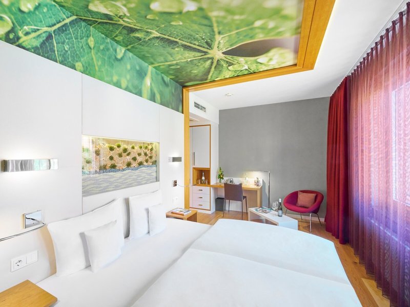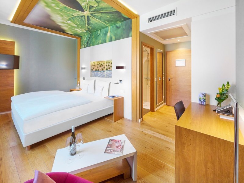 - Dvojlôžková izba deluxe (DZX2), dvojlôžková izba, nefajčiarska izba, v hlavnej budove, v prístavbe, výhľad do záhrady, výhľad na mesto, cca 32 - 35 m², celkový počet izieb v tomto type izby: 1, dispozičné riešenie nasledovne: kombinovaná obývačka/spálňa, 1 manželská posteľ (200x200cm), Detská postieľka: bez poplatku, vyžiadanie a rezervácia nutná, klimatizácia: bez poplatku, sezónne, individuálne nastaviteľné, kúrenie: sezónne, individuálne nastaviteľné, podlaha: parkety, trezor : bez poplatku, písací stôl, espresso kávovar, minibar: bez poplatku, nealko nápoje: bez poplatku, voda: bez poplatku, telefón, Internet: WLAN/WiFi: bez poplatku, TV: plochá obrazovka, nemecké programy, satelitná TV, izbová služba: bez poplatku, upratovacia služba: bez poplatku, samostatná sprcha, WC, papuče: bez poplatku, fén , kozmetické zrkadlo