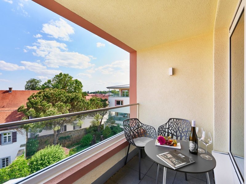 - Suite (SUX1), Suite, Nichtraucherzimmer, im Hauptgebäude, im Nebengebäude, Gartenblick, Stadtblick, ca. 50 - 54 m², Gesamtanzahl der Räume in diesem Zimmertyp: 2, Aufteilung wie folgt: kombiniertes Wohn-/Schlafzimmer, 1 Doppelbett (200x210cm), Babybett: ohne Gebühr, Anfrage & Reservierung notwendig, Klimaanlage: ohne Gebühr, saisonabhängig, individuell regelbar, Heizung: saisonabhängig, individuell regelbar, Fußboden: Parkett, Safe: ohne Gebühr, Schreibtisch, Nespressomaschine, Minibar: ohne Gebühr, Telefon, Internet: WLAN/WiFi: ohne Gebühr, Fernseher: Flatscreen, SKY-Programme, Roomservice: gegen Gebühr, Reinigungsservice: gegen Gebühr, Dusche, WC, Föhn, Kosmetikspiegel, Balkon: mit Sitzgelegenheit