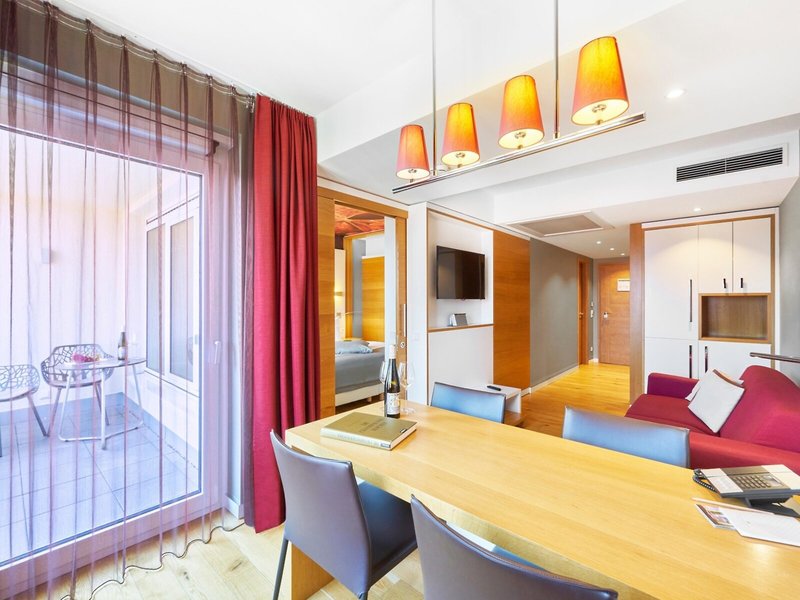 - Suita (SUX1), suita, nefajčiarska izba, v hlavnej budove, v prístavbe, výhľad do záhrady, výhľad na mesto, cca 50 - 54 m², celkový počet izieb v tomto type izby: 2, rozloženie: kombinovaná obývačka/spálňa, 1 manželská posteľ (200x210cm) , Detská postieľka: bez poplatku, vyžiadanie a rezervácia nutná, klimatizácia: bez poplatku, sezónne, individuálne nastaviteľné, kúrenie: sezónne, individuálne nastaviteľné, podlaha: parkety, trezor: bez poplatku , písací stôl, Nespresso kávovar, minibar: bez poplatku, telefón, Internet: WLAN/WiFi: zadarmo, TV: plochá obrazovka, SKY programy, izbová služba: za poplatok, upratovacia služba: za poplatok, sprcha, WC, fén , kozmetické zrkadlo, balkón: s posedením