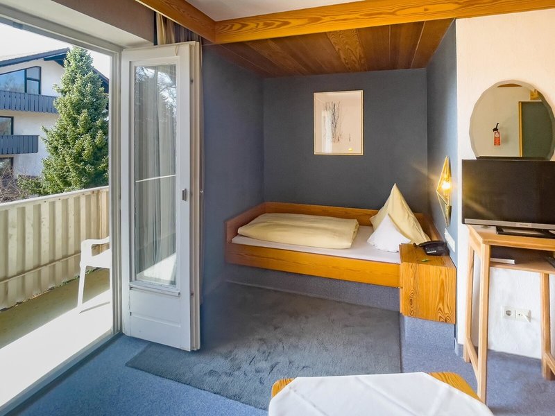 - Jednolôžková izba s balkónom (EZX2), v hlavnej budove, strana do záhrady, výhľad do záhrady, cca 22 m², celkový počet izieb v tomto type izby: 1, 1 samostatné lôžko (100x200cm), kúrenie: v závislosti od sezóny; závislé od počasia, centrálne ovládané, podlaha: koberec, telefón, Internet: WLAN/WiFi: zadarmo, TV: plochá obrazovka, satelitná TV, sprcha, WC, sušič vlasov