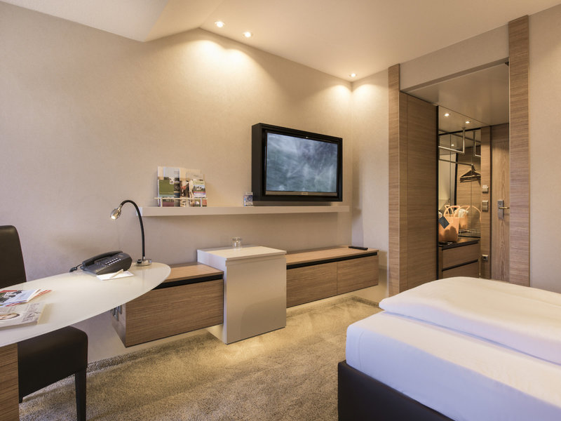 - Einzelzimmer Komfort (EZX1), Einzelzimmer, Nichtraucherzimmer, im Hauptgebäude, ca. 23 m², Gesamtanzahl der Räume in diesem Zimmertyp: 1, Aufteilung wie folgt: kombiniertes Wohn-/Schlafzimmer, 1 Einzelbett (120x200cm), Heizung: individuell regelbar, Fußboden: Teppichboden, Safe: ohne Gebühr, Schreibtisch, Minibar: ohne Gebühr, Telefon, Internet: WLAN/WiFi: ohne Gebühr, Fernseher: Flatscreen, SKY-Programme, Dusche, WC, Bademantel: ohne Gebühr, Slipper: ohne Gebühr, Föhn, Kosmetikspiegel