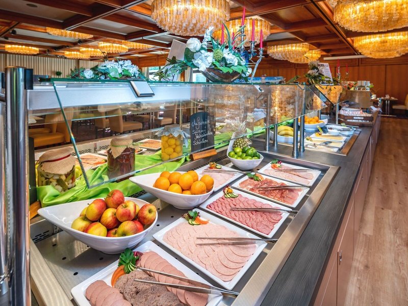 - Hauptrestaurant „Halbpensionsrestaurant Pfaffenstieg“: Küche: international, regional, Kinderbuffet, saisonale Gerichte, vegetarische Gerichte, Buffet, Anfrage & Reservierung nicht notwendig, Januar - Dezember, täglich 07:00 Uhr - 10:30 Uhr und 17:30 Uhr - 20:30 Uhr, mit Terrasse, Kinderhochstuhl, angemessene Kleidung erwünscht