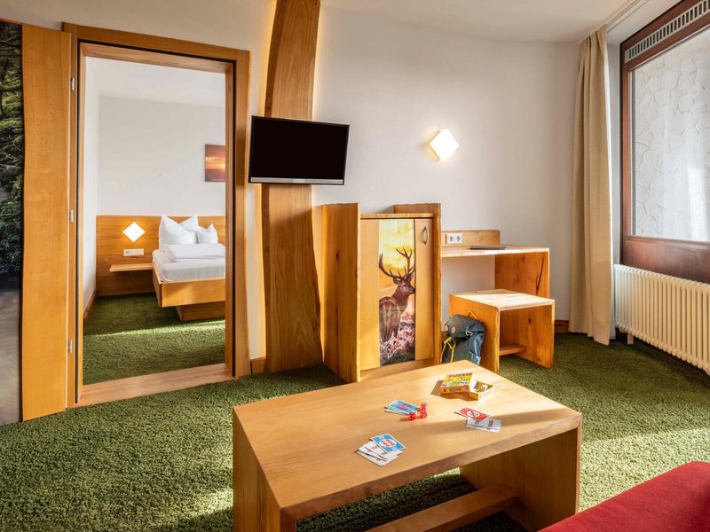 - Familienzimmer (FZX1), Familienzimmer, ca. 36 m², Gesamtanzahl der Räume in diesem Zimmertyp: 2, 1 Doppelbett, 1 Schlafsofa, Babybett: ohne Gebühr, Safe: ohne Gebühr, Minibar: gegen Gebühr, Telefon, Internet: WLAN/WiFi: ohne Gebühr, Fernseher: im Wohnbereich, im Schlafzimmer, Kabel-TV, Reinigungsservice: täglich, ohne Gebühr, Dusche, WC, Bademantel: ohne Gebühr, 2 Bäder, Föhn, Balkon: mit Sitzgelegenheit