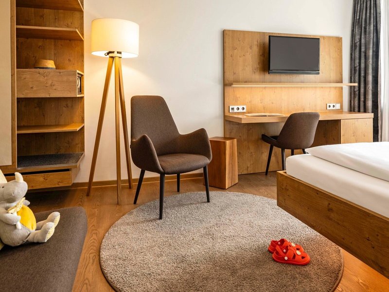 - Single with Child Einzelzimmer Typ1 (EZS1), Einzelzimmer, ca. 16 m², 1 Einzelbett, 1 Zustellbett, Babybett: ohne Gebühr, Safe: ohne Gebühr, Minibar: gegen Gebühr, Telefon, Internet: WLAN/WiFi: ohne Gebühr, Fernseher: Kabel-TV, Reinigungsservice: täglich, ohne Gebühr, Badewanne oder Dusche, WC, Bademantel: ohne Gebühr, Föhn, Balkon: mit Sitzgelegenheit
