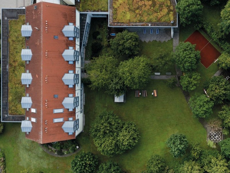- Es befinden sich Grünflächen wie Gärten/Dachgärten auf dem Grundstück.