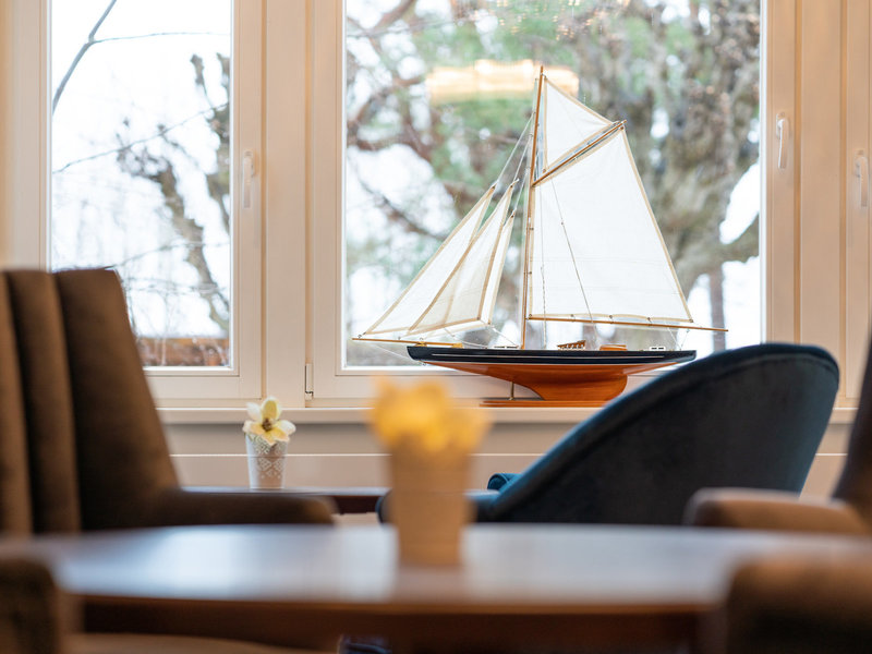 feinsandigen Ostseestrand liegt das komfortable Hotel in direkter Einbindung einer Jugendstilvilla. Das Restaurant im 6. Stock, mit