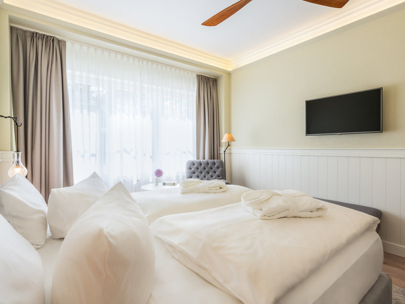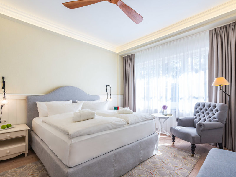 - Superior Zimmer Südseite (DZX1), Doppelzimmer, Nichtraucherzimmer, Landseite, ca. 21 m², letzte Komplettrenovierung 2018, Gesamtanzahl der Räume in diesem Zimmertyp: 1, 1 Doppelbett (180x200cm), Babybett: pro Nacht ca. 15 EUR, Anfrage & Reservierung notwendig, Klimaanlage: individuell regelbar, Heizung: individuell regelbar, Fußboden: Laminat, Safe, Deckenventilator, Wasserkocher, Telefon, Internet: WLAN/WiFi, Fernseher: Flatscreen, Kabel-TV, Reinigungsservice, Dusche, WC, Slipper: ohne Gebühr, Föhn, Kosmetikspiegel