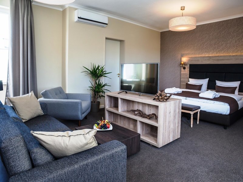 - Junior suita (JSX1), junior suita, nefajčiarska izba, v hlavnej budove, orientovaná na pozemok, výhľad do dvora, cca 40 m², celkový počet izieb v tomto type izby: 1, 1 manželská posteľ (180x200cm), klimatizácia. : zadarmo, individuálne nastaviteľné, kúrenie, podlaha: koberec, Trezor: zadarmo, pohovka, písací stôl, rýchlovarná kanvica, minibar: zadarmo, telefón, Internet: WLAN/WiFi: zadarmo, TV: v obývacej časti , nemecký program, satelitná TV, rádio, izbová služba: denne 9:00 - 21:00, za poplatok, upratovacia služba: za poplatok, sprcha, vaňa, WC, župan: bez poplatku, fén, kozmetické zrkadlo