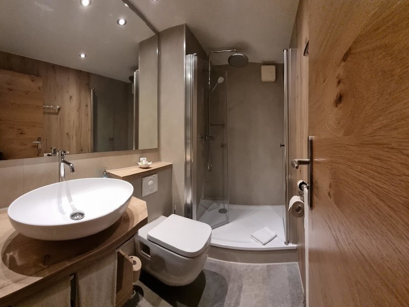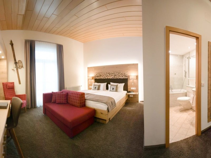 - Rodinný apartmán Weißtannen (SUX2), apartmán, nefajčiarska izba, novostavba, výhľad na hory, cca 39 m², posledná kompletná rekonštrukcia v roku 2025, celkový počet izieb v tomto type izby: 2, rozloženie: pozostáva z 2 dvojlôžkových izieb so spojovacími dverami, 2 spálne, 2 manželské postele (180x200cm), 1 rozkladacia pohovka (180x200cm), klimatizácia: centrálne ovládaná, kúrenie: podlahové kúrenie, podlaha: parkety, trezor, pohovka, písací stôl, kávovar/čajník, rýchlovarná kanvica, minibar: za poplatok, nealkoholické nápoje: za poplatok, voda: za poplatok, alkoholické nápoje: za poplatok, občerstvenie: za poplatok, telefón, internet: WLAN/WiFi: zadarmo, TV: plochá obrazovka, v obývacej časti, v spálni, nemecké kanály, rádio, izbová služba: za poplatok, upratovacia služba, sprcha, WC, samostatné WC, župan, papuče, fén, kozmetické zrkadlo, balkón: s posedením