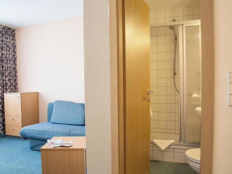 - 2-Raum Studio (DZX2), Studio, Nichtraucherzimmer, ca. 30 m², Gesamtanzahl der Räume in diesem Zimmertyp: 2, Aufteilung wie folgt: Wohnzimmer, 1 Schlafzimmer, 1 Doppelbett (180x200cm), 1 Schlafsofa (100x215cm), Babybett: gegen Gebühr, Anfrage & Reservierung notwendig, Telefon, Internet: WLAN/WiFi: ohne Gebühr, Fernseher: Flatscreen, Dusche, WC, Föhn