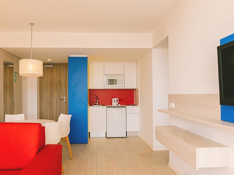 • Apartmán Sea View (APM1), apartmán, nefajčiarska izba, v hlavnej budove, morská strana, výhľad na more, výhľad na Playa Torà, cca 30 m², posledná kompletná rekonštrukcia v roku 2018, posledná čiastočná rekonštrukcia v roku 2024, celkový počet. izby v tomto type izby: 2, rozloženie takto: kombinovaná obývačka/spálňa, 1 spálňa, 2 samostatné lôžka, 2 rozkladacie pohovky, detská postieľka: bez poplatku, rezervácia nie je nutná, klimatizácia: individuálne nastaviteľná, studená, teplá, kúrenie : individuálne nastaviteľná podlaha: laminát, trezor: za poplatok, platba v hotovosti, sedenie, pohovka, kuchynský kút, chladnička: zdarma, mikrovlnná rúra, kávovar/čajník, jedálenský stôl, telefón, Internet: WLAN/WiFi: zdarma poplatok, TV: plochá obrazovka, v obývacej časti, nemecký program, Deutsche Welle, káblová TV, rádio, izbová služba: zdarma, sprcha, WC, fén, balkón: s ležadlami, s ležadlami, s posedením