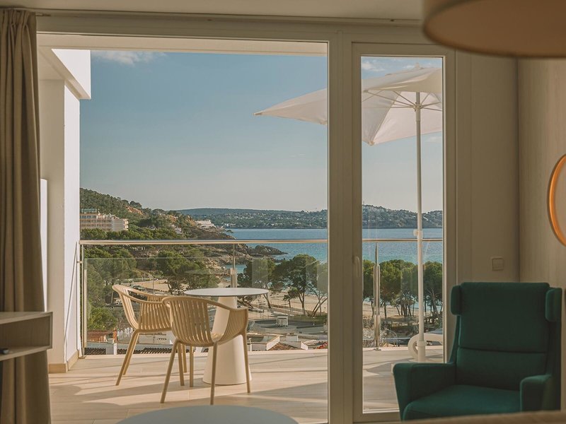 • Suite Sea View (SUM1), Juniorsuite, Nichtraucherzimmer, im Hauptgebäude, Meerseite, Meerblick, Blick auf Playa Torà, ca. 30 m², letzte Komplettrenovierung 2018, letzte Teilrenovierung 2024, Gesamtanzahl der Räume in diesem Zimmertyp: 2, Aufteilung wie folgt: kombiniertes Wohn-/Schlafzimmer, 1 Schlafzimmer, 2 Einzelbetten, 1 Schlafsofa, Babybett: ohne Gebühr, Reservierung nicht notwendig, Klimaanlage: individuell regelbar, kalt, warm, Heizung: individuell regelbar, Fußboden: Laminat, Safe: gegen Gebühr, Barzahlung, Sitzecke, Sofa, Kühlschrank: ohne Gebühr, Nespressomaschine, Telefon, Internet: WLAN/WiFi: ohne Gebühr, Fernseher: Flatscreen, im Wohnbereich, deutsches Programm, Deutsche Welle, Kabel-TV, Radio, Roomservice: ohne Gebühr, Dusche, WC, Föhn, Balkon: mit Liegestühlen, mit Liegen, mit Sitzgelegenheit