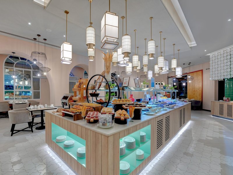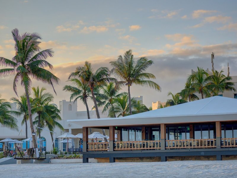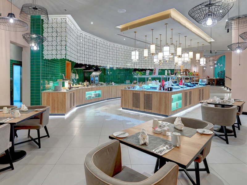 • Spezialitätenrestaurant „Palm Grove Restaurant“: Küche: asiatisch, chinesisch, griechisch, international, indisch, italienisch, libanesisch, mediterran, orientalisch, regional, thailändisch, Fisch/Meeresfrüchte, Grillgerichte, glutenfreie Gerichte: gegen Gebühr, Kindermenü: gegen Gebühr, lactosefreie Gerichte: gegen Gebühr, vegetarische Gerichte: gegen Gebühr, à la carte, gesetztes Menü, Showcooking, gegen Gebühr, täglich 12:30 Uhr - 22:30 Uhr, klimatisierbar, mit Terrasse, am Strand, am Pool, Raucherbereich, angemessene Kleidung erwünscht