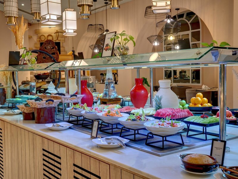 • Reštaurácia so špecialitami Palm Grove Reštaurácia: Kuchyňa: Ázijská, Čínska, Grécka, medzinárodná, Indická, Talianska, Libanonská, Stredomorská, Orientálna, regionálna, Thajská, ryby/plody mora, grilované jedlá, bezlepkové jedlá: za poplatok, detské menu: pre za poplatok, bezlaktózové jedlá: za poplatok, vegetariánske jedlá: za poplatok, à la carte, set menu, show cooking, za poplatok, denne 12:30 - 22:30, klimatizované, s terasou, na pláži, pri bazéne, priestor pre fajčiarov, vhodné oblečenie