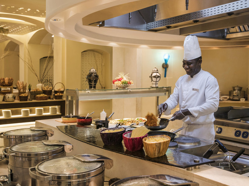 • Restaurant „Saffron Restaurant“: Küche: international, Buffet, Showcooking, mit Terrasse, angemessene Kleidung erwünscht