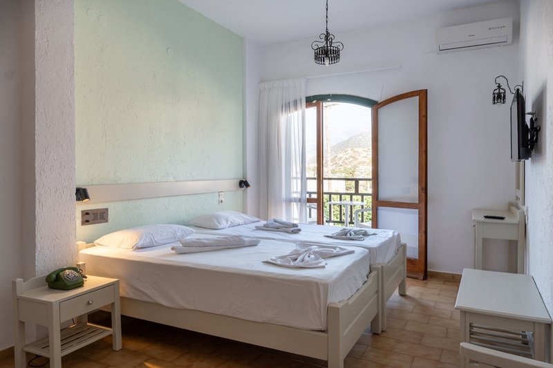 Doppelzimmer: Die gemütlich eingerichteten Zimmer bieten eine individuell regulierbare Klimaanlage (gegen Gebühr), Wi-Fi, Telefon, Safe (gegen Gebühr), Sat.- TV, Kühlschrank (gegen Gebühr) Dusche, WC und Balkon oder Terrasse (D/DI). Wahlweise auch zur Alleinnutzung (DE/DEA) buchbar.
