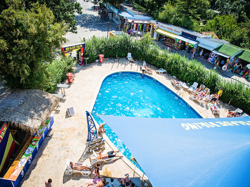 Der Pool auf der Rückseite des Hotels heißt "Den Glade Viking by Day" und verfügt über eine Bar und eine Bühne für Animationen und Mini-Events.