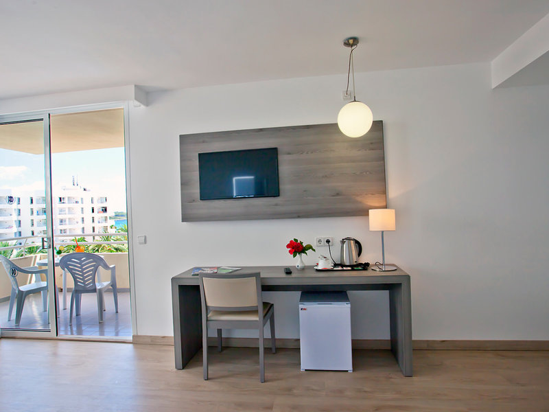 - Štúdio (STX1), štúdio, nefajčiarska izba, v hlavnej budove, morská strana, výhľad na more, výhľad na bazén, cca 27 m², posledná čiastočná rekonštrukcia v roku 2016, celkový počet izieb v tomto type izby: 1, rozloženie ako. nasleduje: kombinovaná obývačka/spálňa, 2 samostatné postele (80x190cm), 1 rozkladacia pohovka (80x190cm), detská postieľka: zdarma, rezervácia nie je nutná, klimatizácia: zadarmo, individuálne nastaviteľná, studená, podlaha: laminát, trezor : cca 2 EUR na deň, chladnička, telefón, Internet: WLAN/WiFi: za poplatok, TV: plochá obrazovka, v obývacej časti, nemecký program, upratovanie: niekoľkokrát týždenne 7:00 - 3:00 hod., vaňa, WC, fén, balkón alebo terasa: s posedením