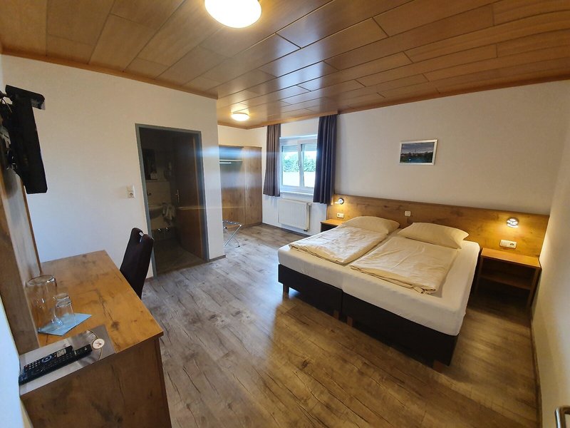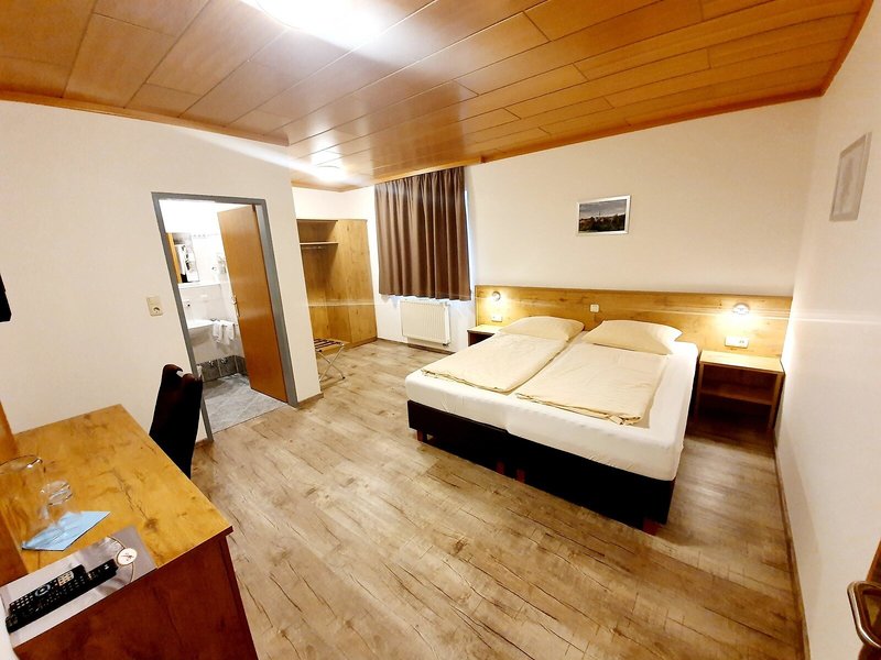 - Rodinné ubytovanie 2 samostatné dvojlôžkové izby (FZX2), rodinná izba, v hlavnej budove, cca 45 m², posledná čiastočná rekonštrukcia 2019, pozostáva z 2 dvojlôžkových izieb bez spojovacích dverí, detská postieľka: zdarma, nutná rezervácia, kúrenie, poschodie : laminát, trezor: zadarmo, písací stôl, telefón, Internet: WLAN/WiFi: za poplatok, TV: nemecké kanály, satelitná TV, upratovanie: denne, vaňa alebo sprcha, WC, sušič vlasov