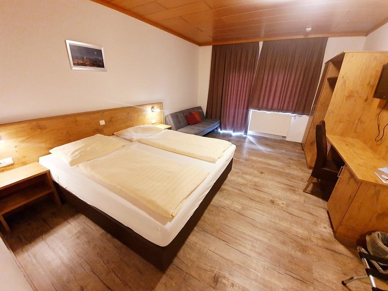 - Rodinná izba typ 1 (FZX1), rodinná izba, nefajčiarska izba, v hlavnej budove, cca 28 m², posledná čiastočná rekonštrukcia 2018, detská postieľka: zadarmo, nutná rezervácia, kúrenie, podlaha: laminát, trezor: zadarmo poplatok, písací stôl, telefón, Internet: WLAN/WiFi : za poplatok, TV: nemecký program, satelitná TV, upratovanie: denne, sprcha, WC, fén