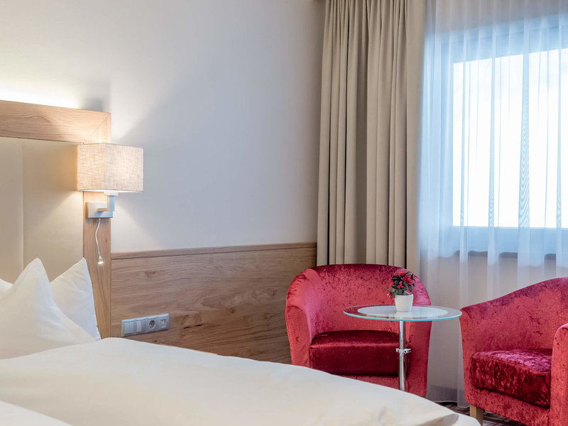 - Komfortzimmer (DZX1), Doppelzimmer, ca. 25 m², 1 Doppelbett, Babybett: ohne Gebühr, Reservierung notwendig, Safe, Sitzecke, Minibar, Telefon, Internet: WLAN/WiFi, Fernseher: Sat-TV, Radio, Reinigungsservice: täglich, Dusche, WC, Bademantel, Föhn, Balkon oder Terrasse: mit Sitzgelegenheit