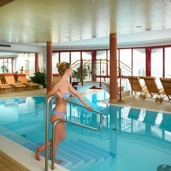- Pool „Panoramahallenbad (8x4m)“: saisonabhängig, ohne Gebühr, Indoor, beheizbar: saisonabhängig, Liegen: ohne Gebühr