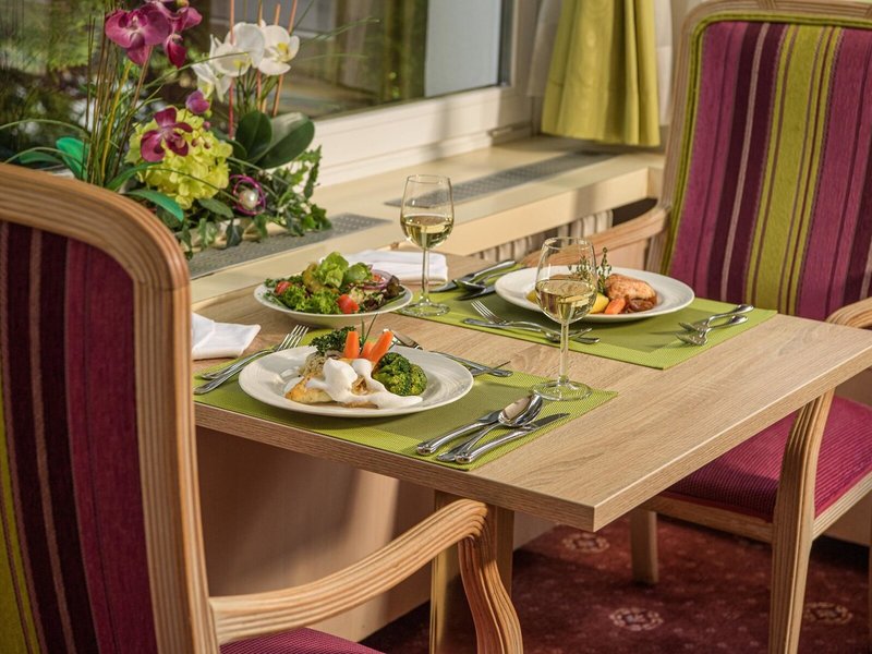 - Hauptrestaurant: Küche: international, regional, glutenfreie Gerichte: Reservierung notwendig, lactosefreie Gerichte: Anfrage & Reservierung notwendig, saisonale Gerichte: Anfrage & Reservierung nicht notwendig, vegetarische Gerichte: Anfrage & Reservierung nicht notwendig, Buffet, Kinderhochstuhl, angemessene Kleidung erwünscht