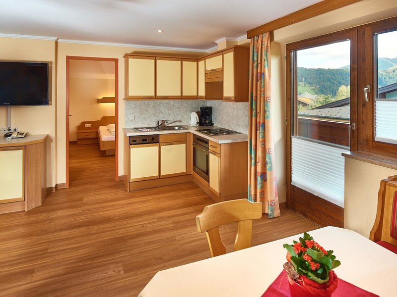 - 2-Raum Appartement (APX2), Appartement, Nichtraucherzimmer, Landseite, Bergseite, Bergblick, ca. 38 - 38 m², Gesamtanzahl der Räume in diesem Zimmertyp: 2, Aufteilung wie folgt: kombiniertes Wohn-/Schlafzimmer, 1 Schlafzimmer, 1 Doppelbett (180x200cm), 1 Schlafsofa (180x200cm), Babybett: ohne Gebühr, Anfrage & Reservierung notwendig, Heizung: individuell regelbar, zentral gesteuert, Fußboden: Parkett, Safe: ohne Gebühr, Sitzecke, Sofa, Küche, Kühlschrank: ohne Gebühr, Backofen, Kochplatte, Geschirrspüler, Kaffeemaschine, Wasserkocher, Toaster, Esstisch, Telefon, Internet: WLAN/WiFi: ohne Gebühr, Fernseher: Flatscreen, im Wohnbereich, deutsches Programm, Reinigungsservice: gegen Gebühr, Dusche, WC, Föhn, Balkon: mit Sitzgelegenheit, Nebenkosten: Endreinigung: pro Person/einmalig ca. 20 EUR