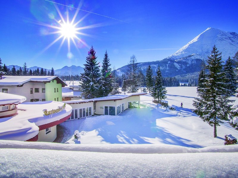 Poloha a okolie Nachádza sa na úpätí pohoria Karwendel v Leutasch, v tichej lokalite na okraji, v lese uprostred prírody, v nadmorskej výške cca 1200 m. Bežkárske trate, turistické chodníky a trasy pre horské bicykle vedú priamo od Alpenhotela. Do centra Leutasch je to cca 1,6 km a na železničnú stanicu v Mittenwalde cca 17 km. Letisko Innsbruck je vzdialené približne 35 km.