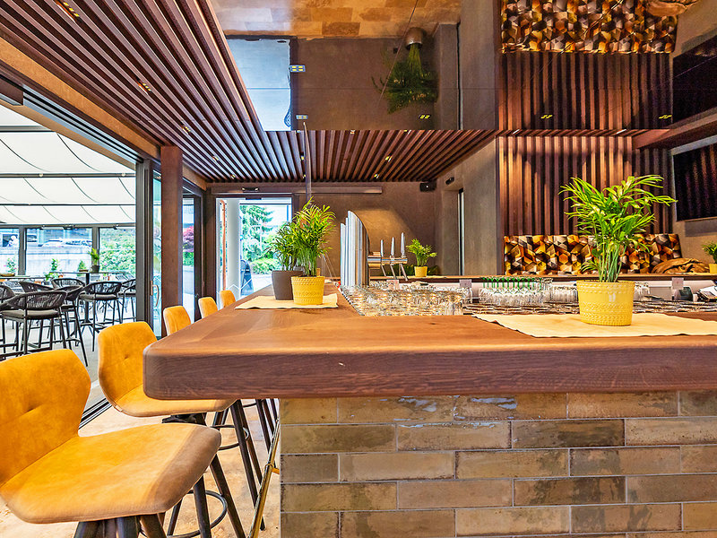 Ausstattung: Rezeption, Speisesaal, Restaurant, Bar, Lounge, Weinkeller. Im Außenbereich Gartenanlage mit Liegewiese auf dem Dach (ab 18 Jahren) sowie Ruhebereichen. Parkplatz. Landeskategorie: 4 Sterne, 120 Zimmer, 3 Etagen, Lift.