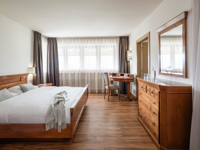 - Rodinná izba so spojovacími dverami, balkón, 40-42 m² (SUX2), rodinná izba, nefajčiarska izba, v hlavnej budove, cca 40 m², posledná čiastočná rekonštrukcia 2024, celkový počet izieb tohto typu: 2, dispozičné riešenie: pozostáva z 2 dvojlôžkových izieb so spojovacími dverami, 2 spální, 1 manželská posteľ, 1 rozkladacia pohovka, kúrenie: individuálne ovládané, podlaha: parkety, trezor: zadarmo, písací stôl, telefón, internet: Wi-Fi: zadarmo, TV: nemecké kanály, satelitná TV, izbová služba: za poplatok, upratovacia služba: za poplatok, vaňa alebo sprcha, WC, župan: zadarmo, papuče: zadarmo, fén, kozmetické zrkadlo, balkón: so sedením