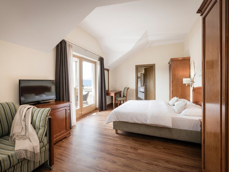 - Dvojlôžková izba Superior s balkónom cca 33 m² (FZX1), Rodinná izba, nefajčiarska izba, v hlavnej budove, cca 33 m², posledná čiastočná rekonštrukcia 2024, celkový počet izieb tohto typu: 1, dispozičné riešenie: kombinovaná obývacia izba/spálňa, 1 spálňa, 1 manželská posteľ, 1 poschodová posteľ, kúrenie: individuálne ovládané, podlaha: parkety, trezor: zadarmo, písací stôl, telefón, internet: Wi-Fi: zadarmo, TV: nemecké kanály, satelitná TV, izbová služba: za poplatok, upratovacia služba: denne, zadarmo, vaňa alebo sprcha, WC, župan: zadarmo, papuče: zadarmo, fén, balkón: s posedením