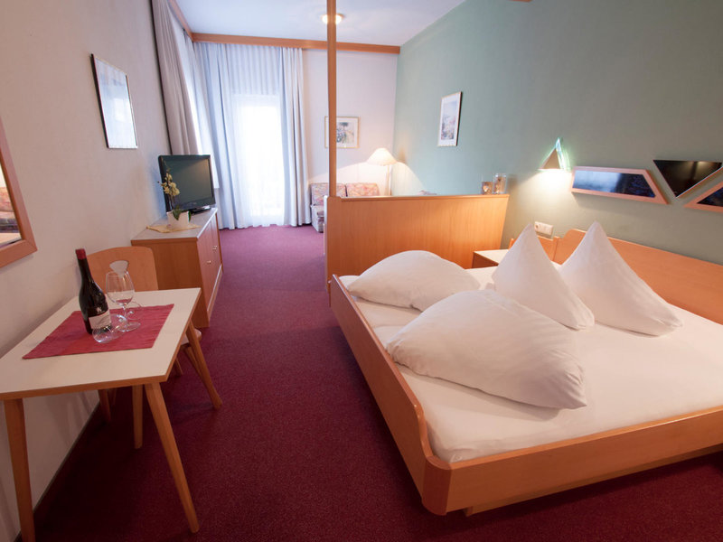 - Doppelzimmer Bergblick (DZX2), Doppelzimmer, Nichtraucherzimmer, im Hauptgebäude, zum Innenhof gelegen, Innenhofblick, ca. 22 m², letzte Komplettrenovierung 2006, letzte Teilrenovierung 2013, kombiniertes Wohn-/Schlafzimmer, 1 Doppelbett (180x200cm), Heizung: individuell regelbar, Fußboden: Teppichboden, Safe: ohne Gebühr, Sitzecke, Sofa, Schreibtisch, Telefon, Internet: WLAN/WiFi: ohne Gebühr, Fernseher: Flatscreen, im Schlafzimmer, deutsches Programm, Sat-TV, Dusche, WC, separates WC, Föhn, Kosmetikspiegel