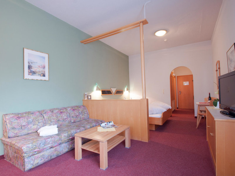 - Rodinná izba (FZX1), rodinná izba, nefajčiarska izba, v hlavnej budove, južná strana, výhľad na krajinu, výhľad do údolia, cca 26 - 30 m², posledná kompletná rekonštrukcia v roku 2013, posledná čiastočná rekonštrukcia v roku 2013, kombinovaná obývacia izba. /spálňa, 1 manželská posteľ (180x200cm), 1 rozkladacia pohovka (150x180cm), kúrenie: individuálne nastaviteľné, podlaha: koberec, trezor: bez poplatku, posedenie, pohovka, písací stôl, telefón, Internet: WLAN/WiFi: bez poplatku, TV : plochá obrazovka, v spálni, nemecký program, káblová TV, sprcha, samostatné WC, fén, kozmetické zrkadlo, balkón: s posedením
