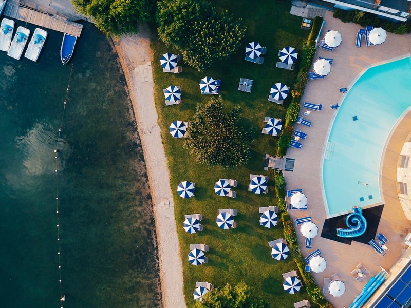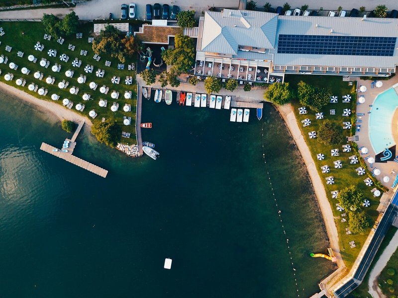 - Jazero kúpalisko: pieskové, prírodné, mólo, vlastné hotelové, ležadlá: za poplatok, slnečníky: za poplatok