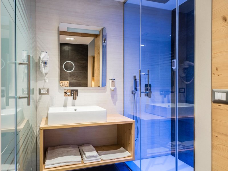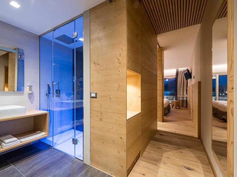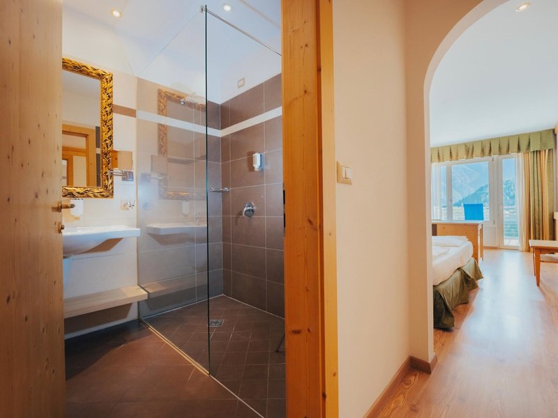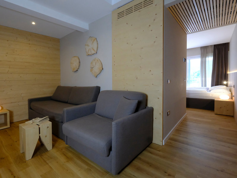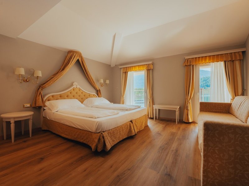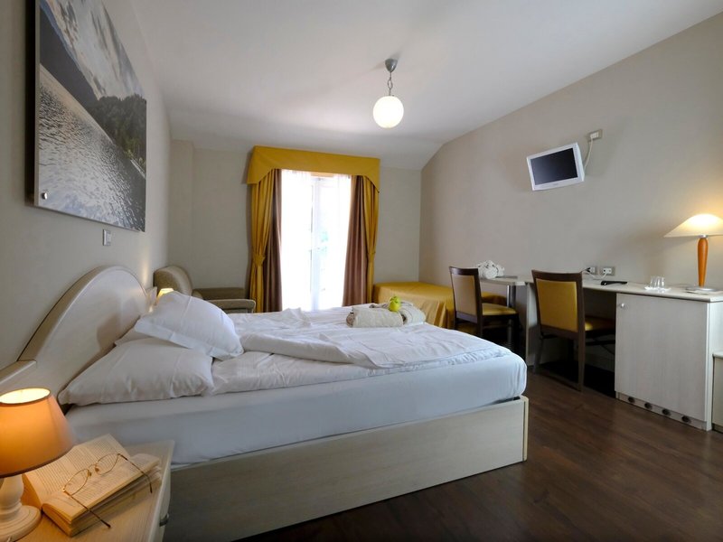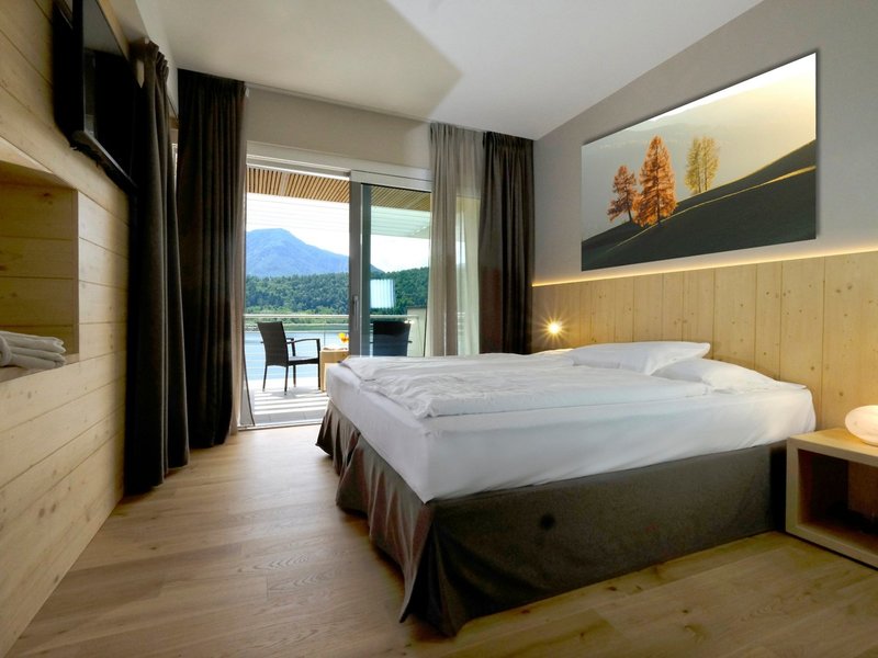 - Dolomia (DZS3), Doppelzimmer, im Hauptgebäude, Seeblick, ca. 33 m², Gesamtanzahl der Räume in diesem Zimmertyp: 1, Aufteilung wie folgt: 1 Schlafzimmer, 1 Doppelbett, 2 Kinderbetten, Babybett: pro Nacht ca. 10 EUR, Anfrage & Reservierung notwendig, Klimaanlage: ohne Gebühr, Safe, Telefon, Internet: WLAN/WiFi, Fernseher, Dusche, WC, Föhn, Balkon oder Terrasse