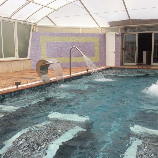 Ausstattung: Das klimatisierte Hotel der gehobenen Mittelklasse besteht aus einem Hotelteil (4 Sterne) und einer Appartementanlage (3 Sterne) und bietet eine Lobby mit 24-h-Rezeption, einen Konferenzraum, ein Buffetrestaurant, einen Aufenthaltsraum sowie eine Bar. In der Mitte der beiden Gebäudeteile befinden sich die Gartenanlage mit zwei Swimmingpools und ein separates Kinderbecken sowie eine Sonnenterrasse mit Liegen, Sonnenschirmen und eine Hotelbar.