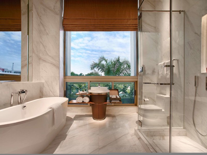 Lage & Umgebung Das Hotel erfreut sich privilegierter Lage im Fort-Canning-Park, der nicht nur die Einkaufspassagen der Orchard Road und das Vergnügungsviertel Clarke Quay umfasst, sondern auch bis zum zentralen Geschäftsviertel und zum Civic Distrikt reicht. Die Sehenswürdigkeiten der Umgebung umfassen den Fort-Canning-Park und das Nationalmuseum von Singapur. Es gibt 3 9-Loch-Golfplätze, etwa 1,5 Autostunden vom Hotel entfernt, in Sedenak, Johor und Malaysia (gegen Gebühr). Der internationale Flughafen Changi ist etwa 25 min vom Hotel entfernt, und in etwa 5 Gehminuten erreichen die Gäste die nächste Metro-Station, Dhoby Ghaut.