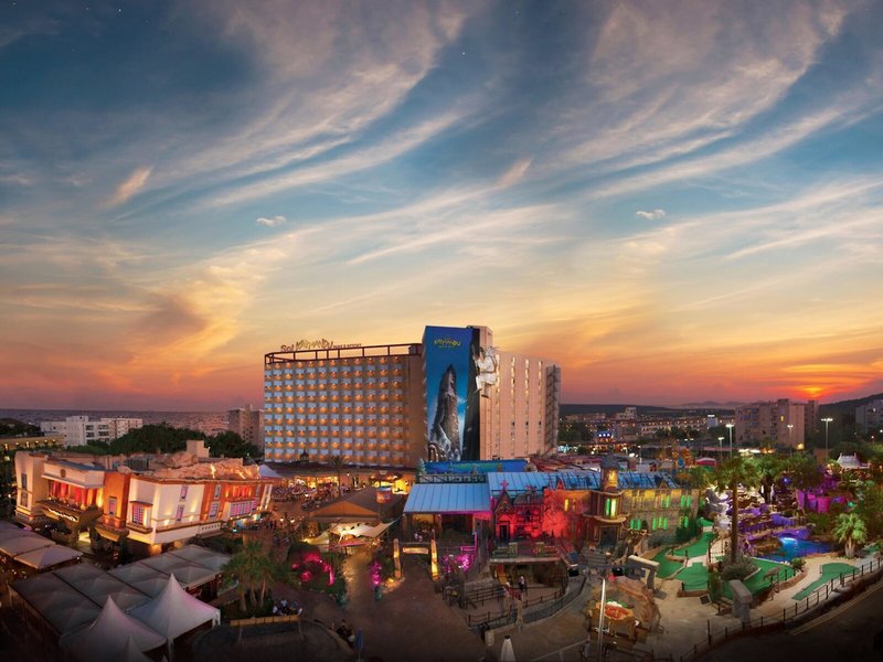 Lage & Umgebung Das beliebte Hotel ist etwa 250 m vom schönen Sandstrand entfernt und liegt im Themenpark Katmandu. In das belebte Stadtzentrum von Magalluf sind es nur wenige Gehminuten. Hier befinden sich zahlreiche Einkaufs- und Unterhaltungsmöglichkeiten. Zum Golfclub Santa Ponsa sind es 10 Minuten, zum Aquapark 1,5 km und zum Golfplatz Poniente 2 km. Die Inselhauptstadt Palma mit dem Airport ist etwa 26 km entfernt.