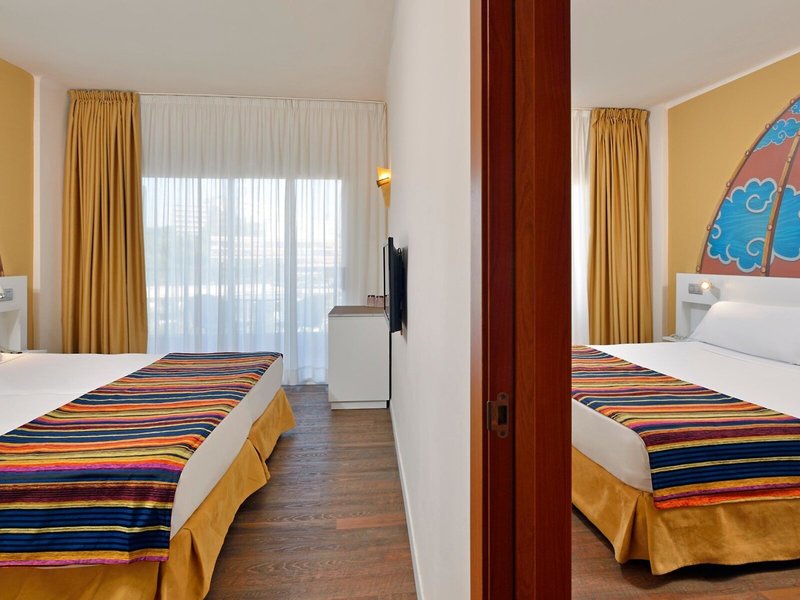 - Familienzimmer 2 Bedrooms (FZX2), Familienzimmer, Gartenseite, Gartenblick, ca. 40 m², 4 Einzelbetten, 2 Zustellbetten, Klimaanlage: individuell regelbar, Heizung, Fußboden: Laminat, Safe, Minibar, Telefon, Internet: WLAN/WiFi, Fernseher: Flatscreen, Sat-TV, Tageszeitung, Badewanne oder Dusche, Bademantel, Slipper, Föhn, Balkon oder Terrasse: mit Sitzgelegenheit