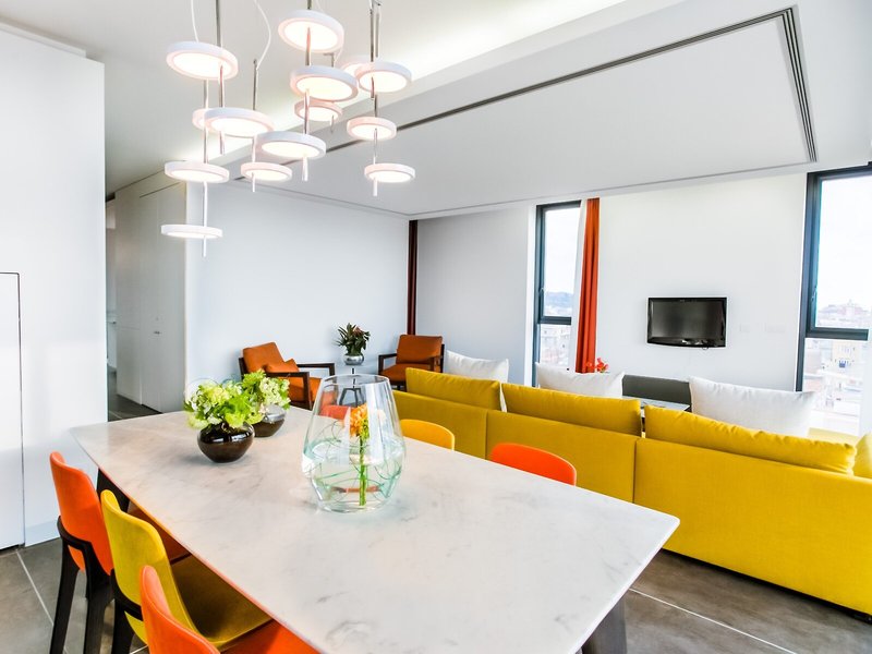 Vaše ubytovanie: Izby sú vybavené klimatizáciou a kúrením. Izby sú vybavené manželskou posteľou, posteľou veľkosti queen, posteľou veľkosti king alebo rozkladacou pohovkou. Prístelky sú k dispozícii na požiadanie. K dispozícii je aj trezor, minibar a písací stôl. Štandardom je plne vybavená kuchynka s chladničkou, minichladničkou, mikrovlnnou rúrou, zariadením na prípravu čaju a kávy, umývačkou riadu a všetkým potrebným riadom. K dispozícii je aj žehliaca súprava a lis na nohavice. Okrem toho je k dispozícii telefón, TV so satelitnými kanálmi a možnosťou platených programov, rádio a bezplatné Wi-Fi pripojenie na internet. Kúpeľňa so sprchovacím kútom je vybavená sušičom vlasov a telefónom. Pre väčšie pohodlie sú k dispozícii toaletné potreby. Izby s bezbariérovým prístupom sú k dispozícii na požiadanie. Rodinné izby sú k dispozícii pre rodičov s deťmi.