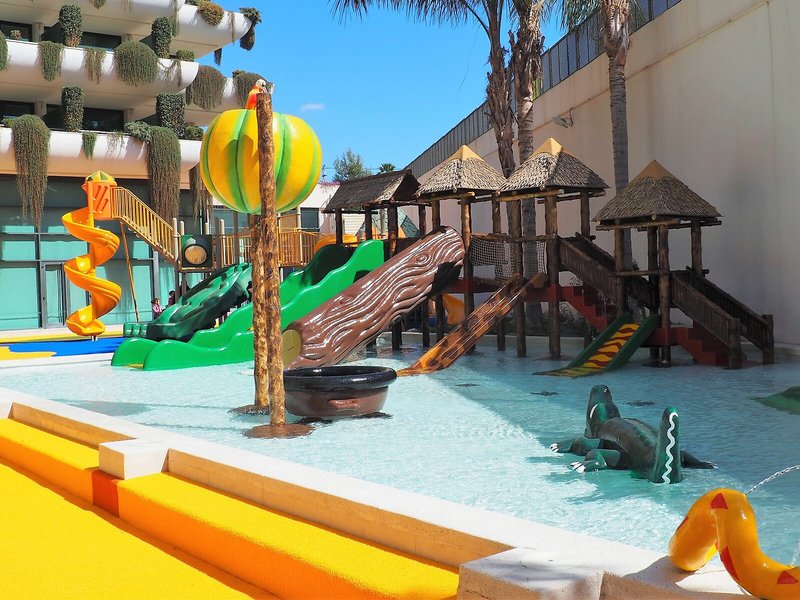 Sport & Fitness: Ein Außenpool und ein Hallenbad laden zum entspannten Badevergnügen ein. Kinder können sich in einem Planschbecken austoben. Im Badebereich gibt es zudem einen Whirlpool (gegen Gebühr), eine Wasserrutsche und eine Poolbar. Auch eine Terrasse mit Sonnenliegen und Sonnenschirmen ist vorhanden. Wer auch auf Reisen nicht auf Sport verzichten möchte, dem bietet die Unterbringung Paddle-Tennis. Das Haus bietet eine Vielzahl an Möglichkeiten zur sportlichen Aktivität im Indoor-Bereich, wie etwa ein Fitnessstudio, Tischtennis und Darts sowie gebührenpflichtig Billard. Das Hotel verfügt über einen Wellnessbereich mit einem Spa, einem Hammam und Hydrotherapie-Anwendungen sowie gegen zusätzliche Gebühr eine Sauna, ein Dampfbad und Massage-Anwendungen. Kleine und große Gäste haben die Möglichkeit, mit Unterhaltungsprogrammen ihren Aufenthalt abwechslungsreicher zu gestalten.