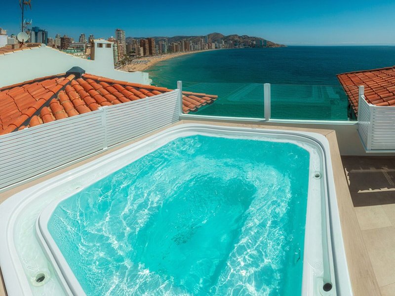 Lage & Umgebung Das Hotel liegt direkt am Mittelmeer, mitten im Herzen des historischen Zentrums von Benidorm und nahe des Kirchenplatzes San Jaime. Bis zum Strand Levante und der Altstadt mit Fußgängerzone, Geschäfte, Bars und Restaurants sind es nur ca. 25 m Entfernung.