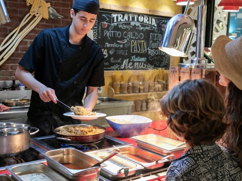 Essen & Trinken: Der gastronomische Bereich wartet mit einem Nichtraucherrestaurant und einer Bar auf. Es sind diverse Verpflegungsleistungen buchbar. Die Gäste können zwischen Halbpension, Vollpension und All-Inclusive wählen. Ein leckeres und reichhaltiges Buffet erwartet die Gäste zum Frühstück, Mittag- und Abendessen. Für besondere Gaumenwünsche hält das Resort Diätgerichte bereit. Zusätzlich sind spezielle Verpflegungsangebote und Snacks erhältlich. Die hervorragenden Köche bereiten beim Showcooking köstliche Spezialitäten zu. Es stehen alkoholfreie Getränke zur Auswahl.